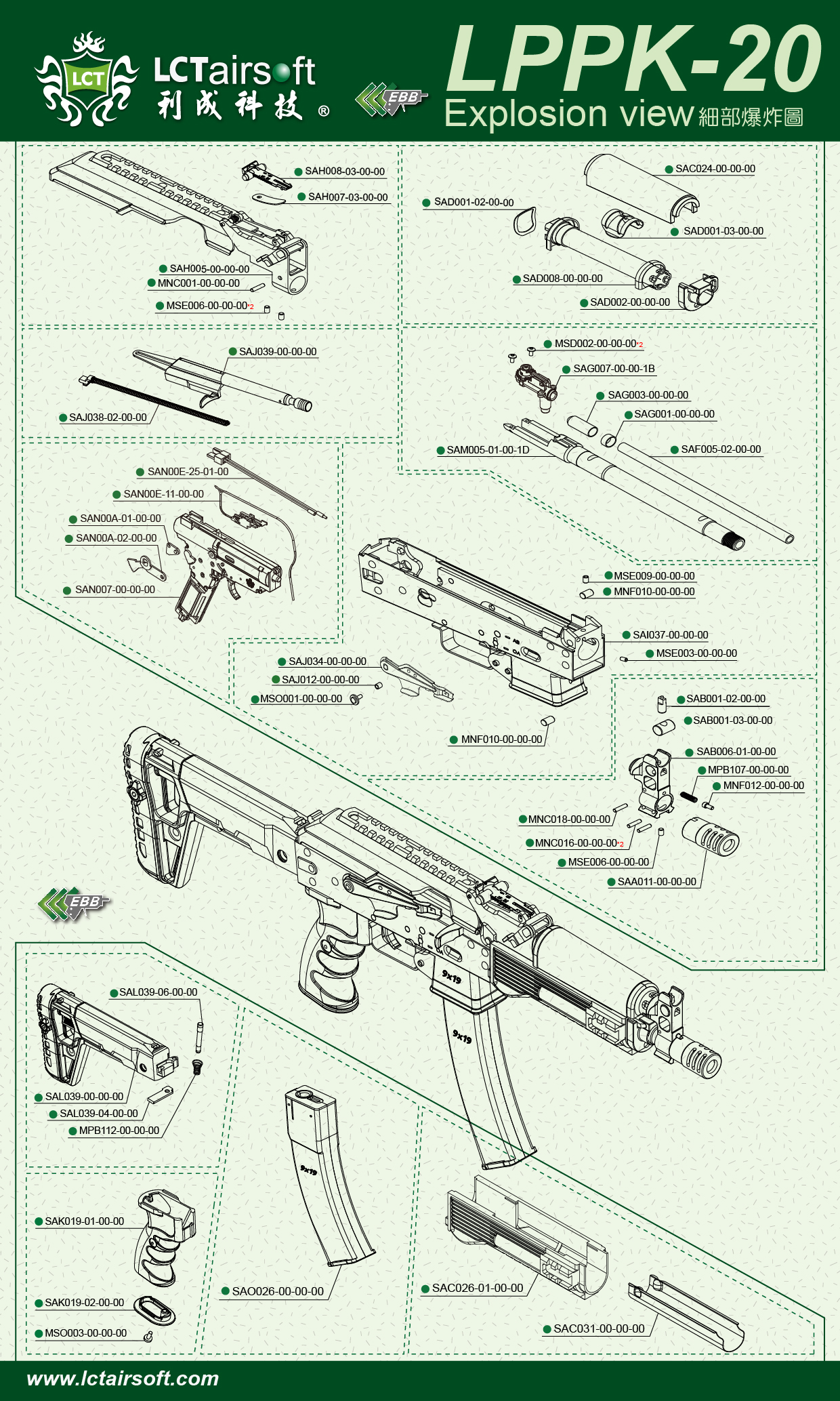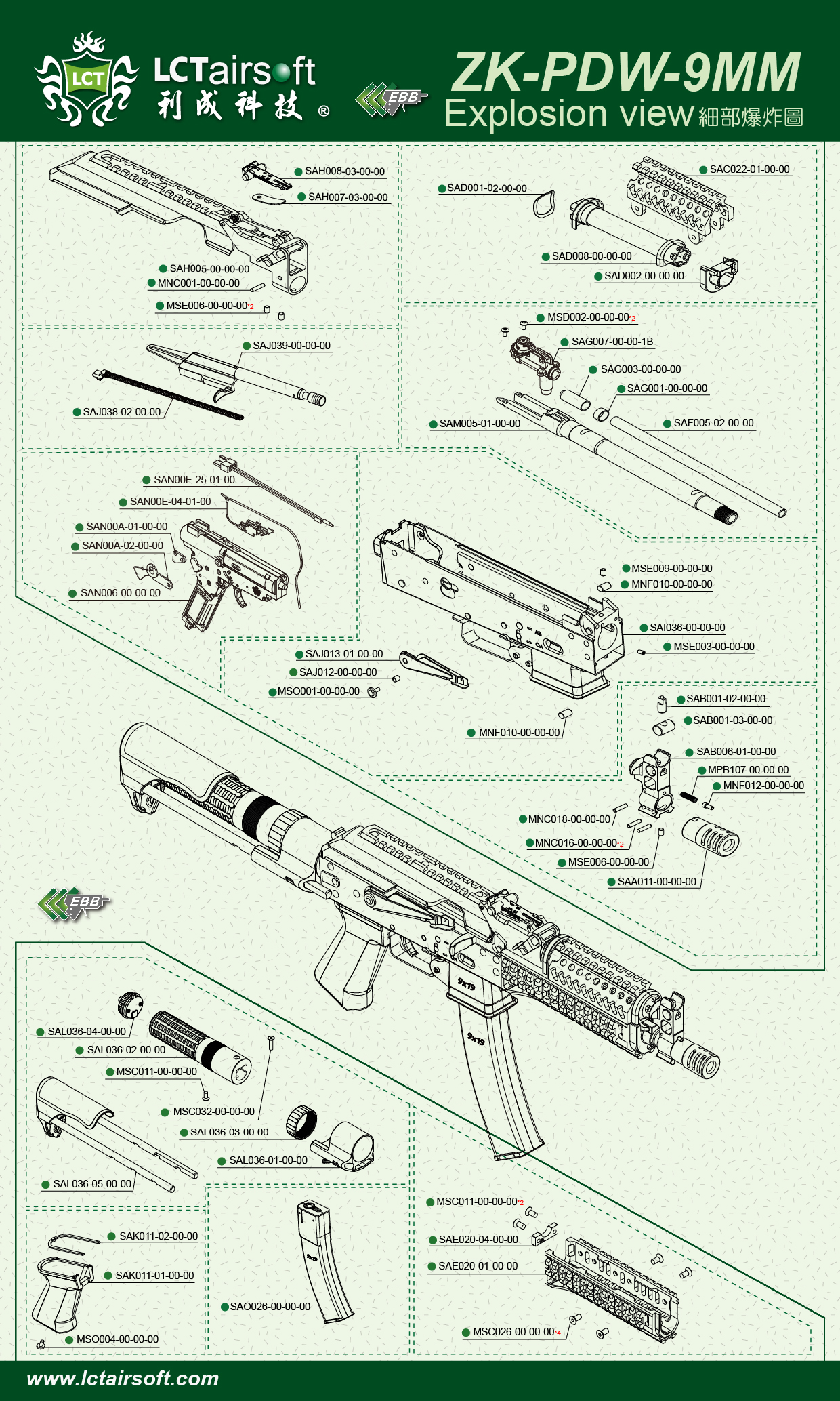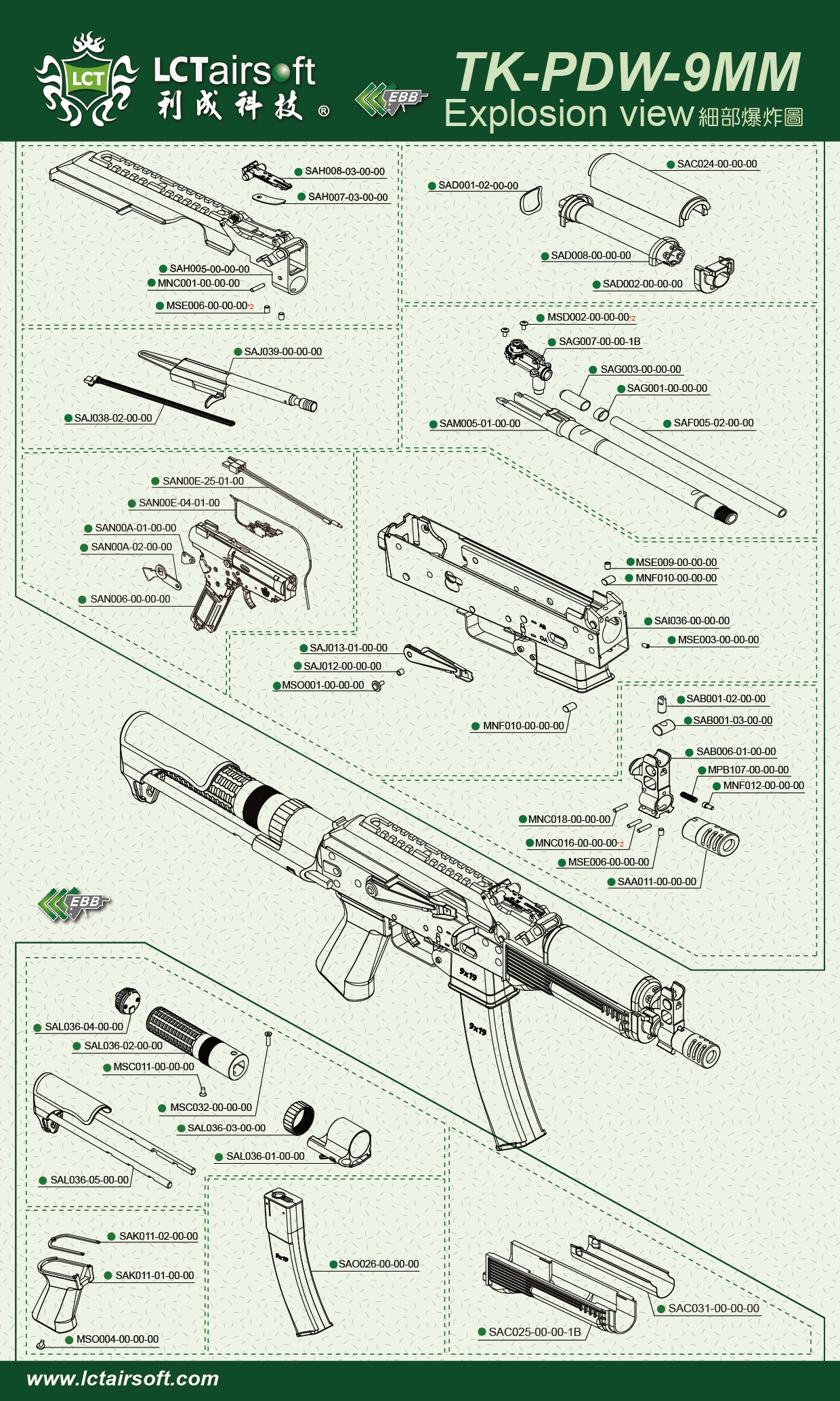 AAE029-00-00-00 TK-PDW-9MM EBB Explosion view